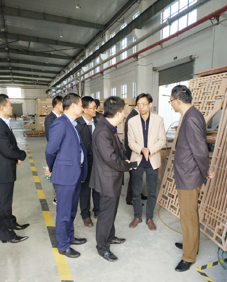 汉宁集团吴边董事长接待来宾一行,领导们对汉宁当下的发展规模、木材生产工艺、办公环境以及经营情况进行了全面的视察和指导。