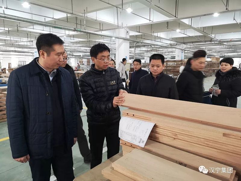 冯市长一行在吴总的带领下,深入原木家居生产一线,了解木材备料、开料、组装的生产过程,以及纯原木定制与市场上的板材复合材料的环保性差异。