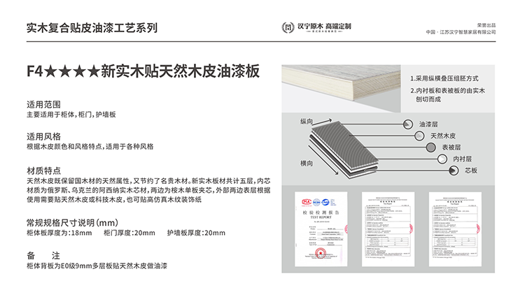 从“中国制造”到“中国创造”,10年来汉宁致力研发生产“实用+美学”的新型家居材料,为千万家庭提供优质的产品,为设计师提供更多的设计灵感。2019年最新推出的F4星新实木不仅以高环保性、高稳定性、高性价比获得市场与用户的青睐,也获得由日本国土交通部颁发的F☆☆☆☆认证证书。