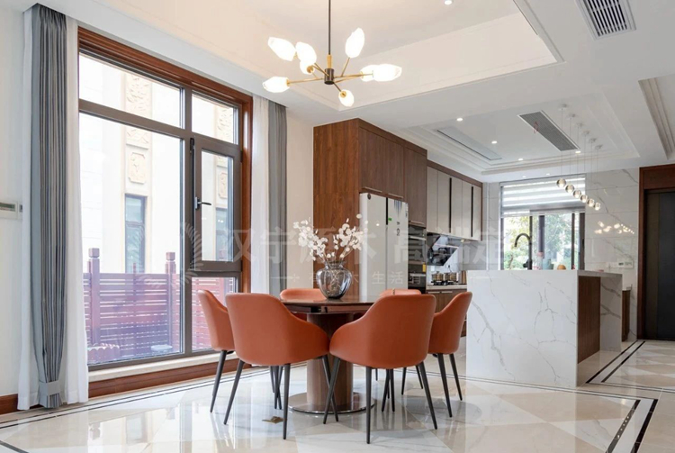 家庭社交空间的营造越来越受关注,未来的家居设计中可以尝试把单纯的美味厨房变成社交型厨房---将厨房和临近的餐厅、客厅打通,空间动线流畅,让朋友和亲人都能参与到烹饪过程中,大家一起洗菜、备餐,谈论美食烹饪,拉近人与人之间的距离。