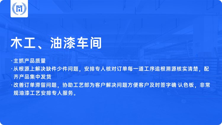 汉宁联合集团及车间多个部门---销售部、客服部、设计部、木工车间、油漆车间、质检部、售后部等,对每一个工种提出明确、清晰的工作准则,积极推进高效高质的工作方式与服务方法,全方位为消费者提供贴心的全屋定制体验。